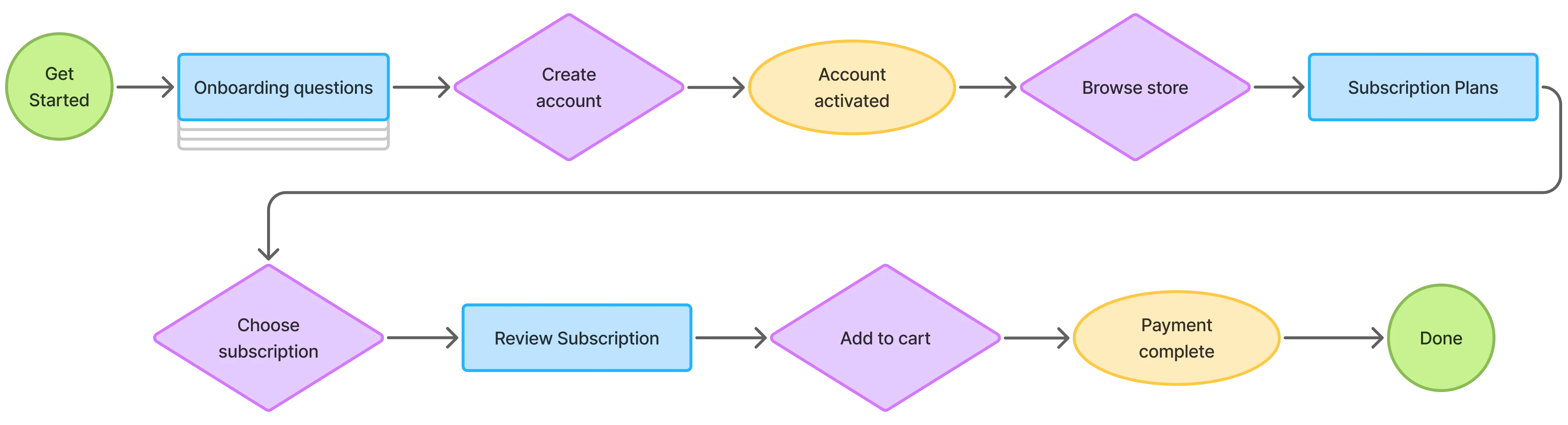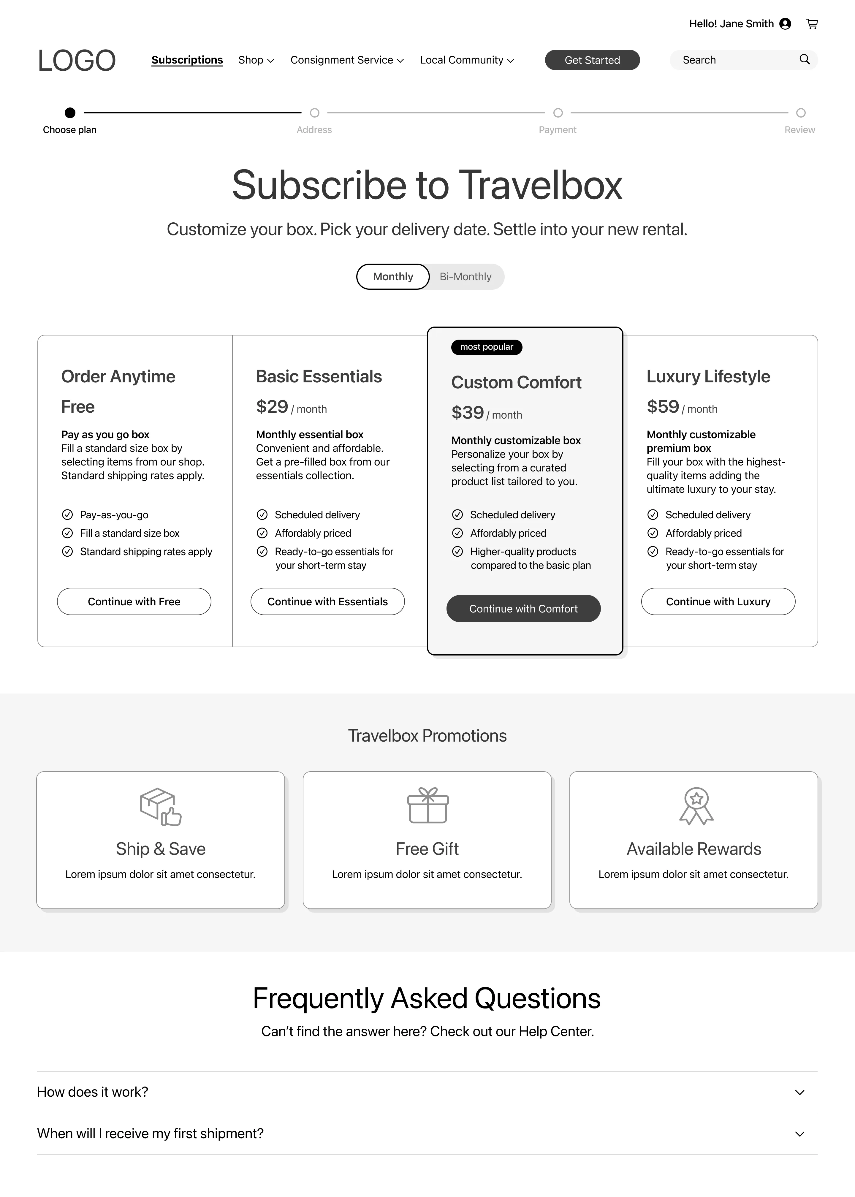 Relocation stress starts before move-in, so I designed Travelbox as more than a storefront. To reduce uncertainty and support better decision-making before arrival, I mapped the full product flow. This connected onboarding, browsing and subscription selection into one experience.