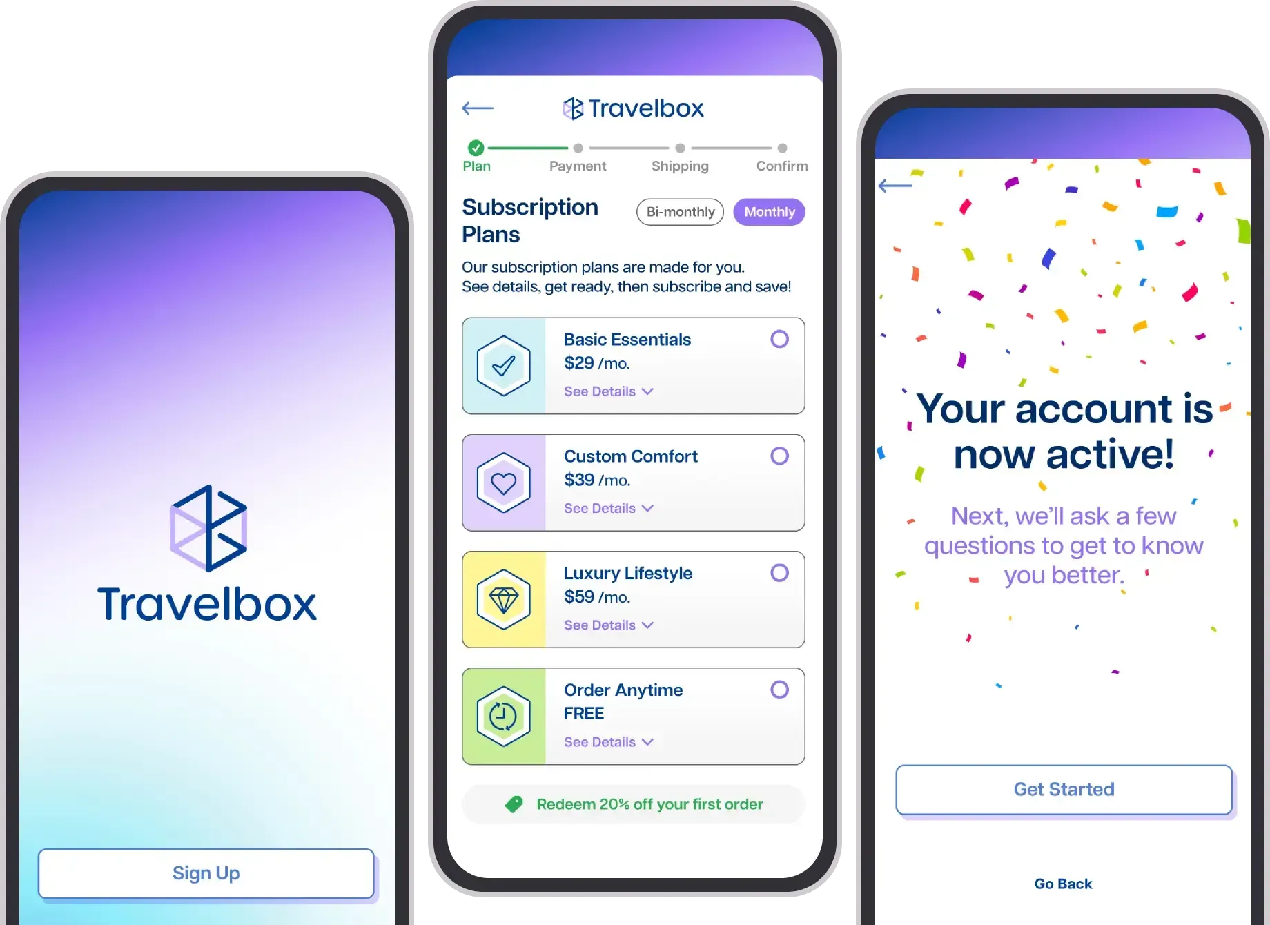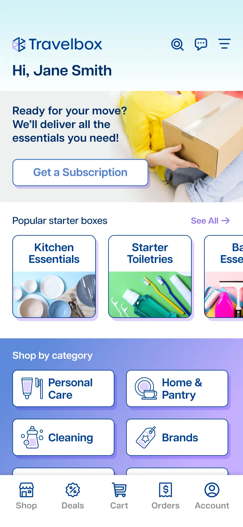 Professionals who temporarily relocate for work often receive housing support, but still face unexpected costs, unclear rental amenities, and the hassle of figuring out what to pack or buy after arrival. Travelbox is an app concept designed to make short-term stays feel easier through curated and customizable subscription boxes with everyday essentials, helping users settle in quickly and comfortably.