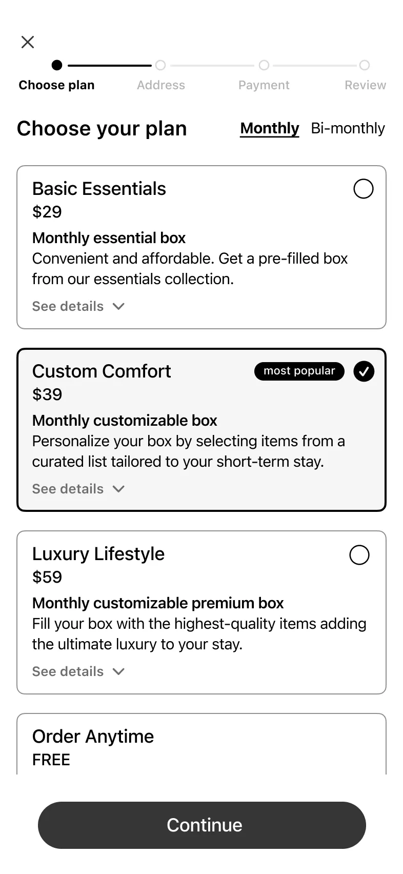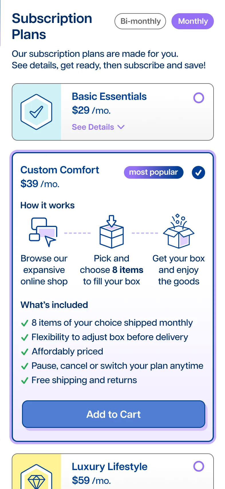 A single-column layout made plan selection feel simpler and less compact. Creating a clear hierarchy around pricing and details, helps users compare plans without feeling overwhelmed.