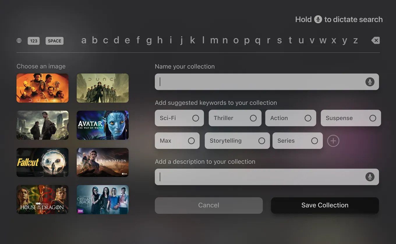 Today’s streaming experience gives users a plethora of content, but not a clear way to manage it. Apple TV Hub addresses that gap by creating a more intuitive cross-platform viewing experience. Features like creating/sharing collections and conversational search help users return to what they care about without relying on repeated searches or fragmented app navigation.