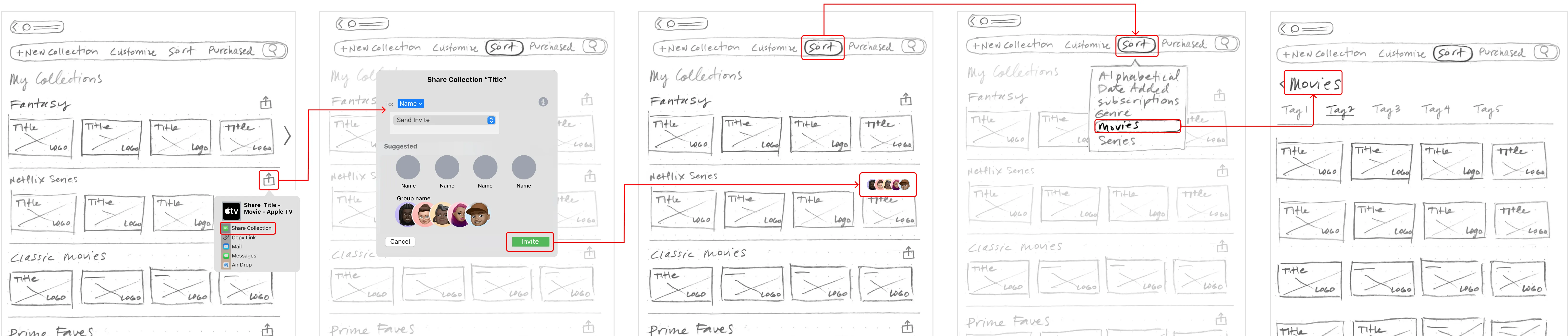 I evaluated how clearly users share collections, understand sharing status and manage shared content within a tvOS-style interface.